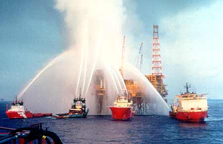 Em janeiro de 1985, a explosão de uma máquina bombeadora na plataforma