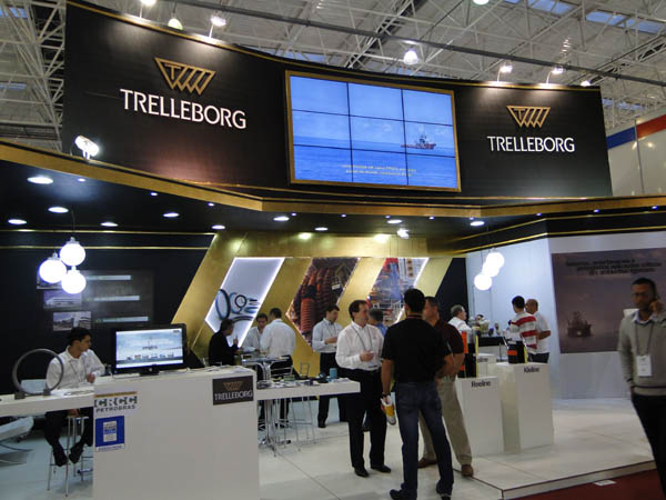 Na Brasil Offshore estão presentes três áreas de negócio do grupo Trelleborg: Sealing Solutions, Offshore & Construction e Industrial Solutions. A primeira, que acaba de receber a homologação para ser fornecedora da Petrobras, apresenta as buchas e mancais em Orkot e os anéis metálicos Wills Rings “O” e “C” para aplicações de vedação de face estática. A Trelleborg Offshore & Construction mostra seu portfólio mais recente de materiais para isolamento térmico Vikotherm, que atende a requisitos rigorosos de temperatura e pressão em águas profundas, e os bend stiffeners (enrijecedores de curvatura, aplicados à tubulação flexível ou umbilical conectada a uma estrutura) e os bend restrictors (restritores de curvatura, normalmente aplicados nos pontos de conexão dos flexíveis com os equipamentos submarinos), usados para proteger tubulações flexíveis ou umbilical de encurvamento e deformação. E a Trelleborg Industrial Solutions mostra seu portfólio de mangueiras petroleiras offshore para diversas aplicações do setor: Sealine, Kleline e Reeline.