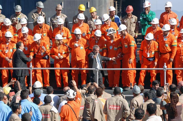 O Presidente da República Luiz Inácio Lula da Silva, o Governador do Estado do Rio de Janeiro, Sérgio Cabral, a Ministra Chefe da Casa Civil e madrinha da P-52, Dilma Roussef, o ministro interino de Minas e Energia, Nelson Hübner, e o Presidente da Petrobras, José Sergio Gabrielli de Azevedo, participaram, nesta quinta-feira, da cerimônia de batismo da plataforma P-52, no estaleiro Brasfels, em Angra dos Reis / RJ.
