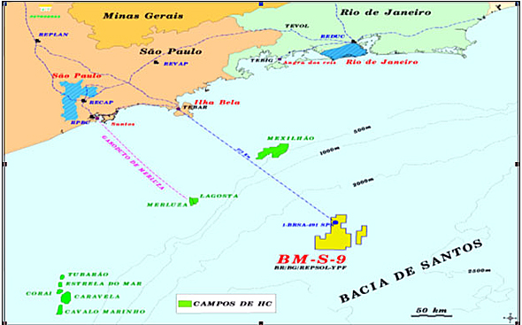 contendo óleo de 27º API no bloco BM-S-9, na Bacia de Santos.