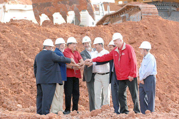 | Os presidentes Lula e Chavez em visita às obras da Refinaria Abreu e Lima, acompanhados dos presidentes da Petrobras, José Sergio Gabrielli, e da PDVSA, Rafael Ramírez |