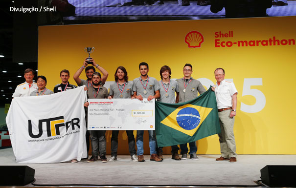 A equipe formada por alunos da Universidade Tecnológica Federal do Paraná - UTFPR obteve a segunda colocação no Shell Eco-marathon Americas – na categoria “Combustível Alternativo” – na competição realizada nesse final de semana em Detroit, nos EUA. O protótipo Popygua obteve a marca de 316km/l de etanol e alcançou o melhor resultado brasileiro nas nove edições da competição. Mais de 1.000 estudantes de cinco países americanos testaram o potencial energético de seus protótipos em seis categorias: Bateria, Gasolina, Combustíveis Alternativos, Diesel, Hidrogênio e CNG. A outra equipe brasileira premiada nesta edição foi a da Universidade Presbiteriana Mackenzie, de São Paulo. Os estudantes receberam o “Prêmio Perseverança” por terem trabalhado duro para conseguir deixar o carro pronto para a corrida. Um problema na alfândega atrasou em dois dias a chegada à Detroit do protótipo desenvolvido pelo time. Os brasileiros, no entanto, trabalharam por 14 horas seguidas para conseguir passar na inspeção técnica. O resultado da determinação da equipe foi o nono lugar na categoria “Bateria Elétrica”. A Universidade de Toronto ficou com o prêmio de ultra eficiência energética. |