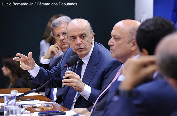 O autor do Projeto de Lei que põe fim à operação única no pré-sal, José Serra, explicou que desobrigação não significa que a Petrobras será afastada dos processos de licitação, apenas permite que a empresa escolha os campos de seu interesse. O ministro das Relações Exteriores participou hoje de audiência pública na Comissão Especial do Pré-Sal na Câmara. |