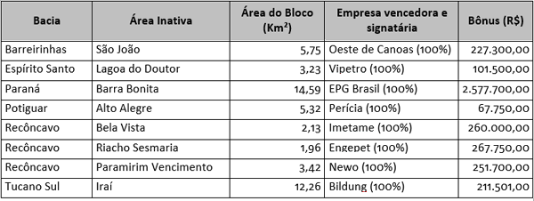 A Agência Nacional do Petróleo assinou ontem os contratos dos oito campos com acumulações marginais arrematados na 13a rodada, realizada em dezembro de 2015. |