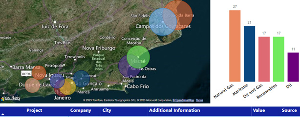 O mercado de óleo e gás representa 63% do potencial - incluindo 17 em produção de óleo e 16 em descomissionamento -, mas há ainda outros 17 em energias renováveis, sendo 10 apenas de parques eólicos offshore. Do total, mais de 50% dos projetos estão no Norte Fluminense. Os empreendimentos têm previsão de conclusão já a partir de 2024, e considera projetos em andamento, confirmados e potenciais após 2030.