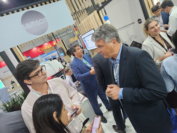 Conectividade via ethernet, wi-fi, 4-20mAcc + HART, sistema integrado de gestão, operação e diagnósticos remoto da smart valve, , alertas de necessidade de manutenção, falhas operacionais e até detecção de atuação fora das especificações de projeto, trazem inteligência para as válvulas de controle”, contou Victor Venâncio (terno azul indigo, ao fundo) , da Samson. |